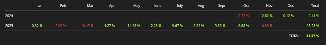 Return since inception October 22, 2024 to November 11, 2025 - in euro 31.37%, in US dollar 40.64%.