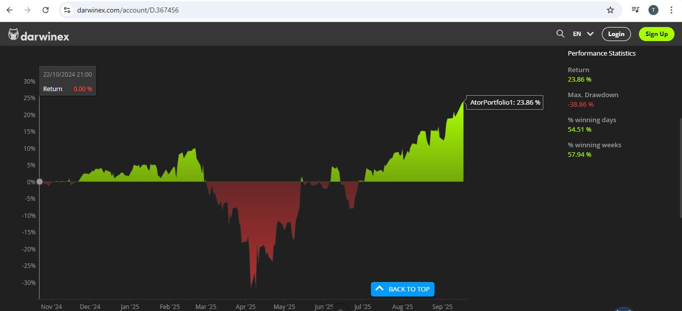 Performance history from Portfolio Standard and Portfolio Leverage confirmed by Darwinex, regulated broker and asset manager in Europe.
